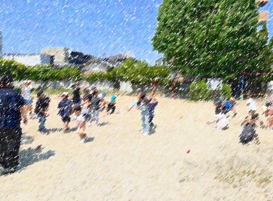 レクリエーションのゲームでは、上級生のお兄さん、お姉さんが1年生を引っ張ってくれて、みんなで楽しい時間を過ごすことができました。