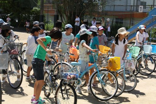 梅雨明けの晴天の暑い陽射しの中、みんな真剣に自転車の乗り方を学びました。ここでの体験がきっと子ども達の交通事故を防いでくれることと思います。