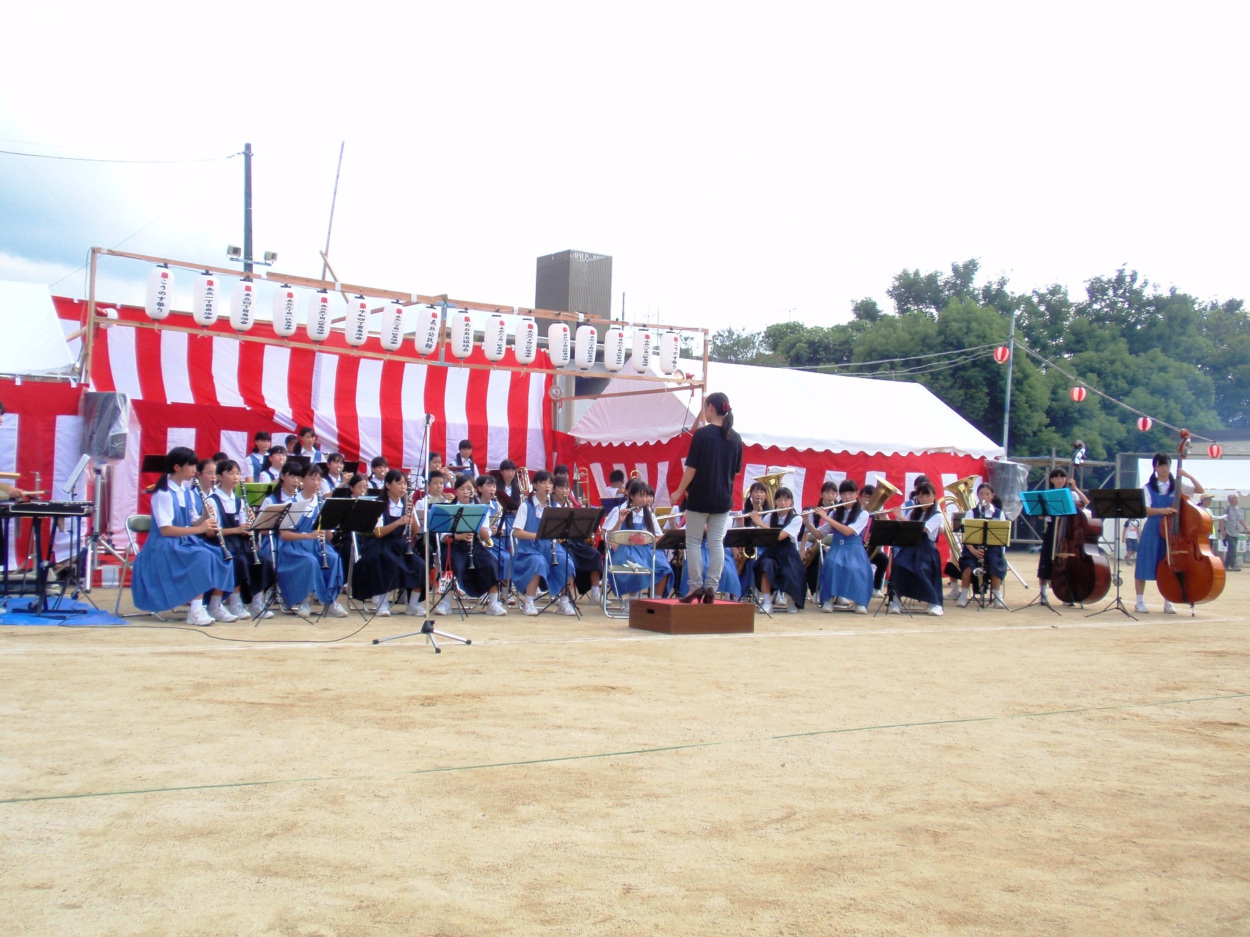 オープニングの「長丘ふれ太鼓」では地域の青年!?たちによる太鼓隊・長丘中学校ブラスバンド部の登場で華を飾りました。