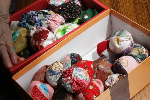 7月21日(水)10:00、長丘第2会館と長丘西公園で、町内のお年寄りと子どもたちが、昔の遊びをとおしてふれあう催しが開かれました。これは75歳以上のお年寄りで構成される「ふれあいネット」の主催により、昨年から夏と冬の年2回行われています。 この日は37名の小学生が集まりました。最初に昔の遊びについてや、今日の段取りなどについてお話があった後、「うめぼし体操」で体をほぐし、4グループに別れて、あやとり、お手玉、おはじき、弓矢を、お年寄りに教わりながら楽しみました。全員が4つの遊びをできるように、時間を区切ってローテーションしました。 最後に、みんなでお弁当をいただき、13:00くらいにお開きとなりました。
