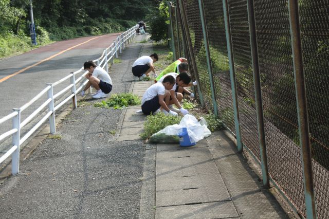校区青少年育成連合会の主催による長丘クリーンデーが、9月2日(日)午前9時から約1時間行われ、長丘小学校・中学校の周辺を清掃しました。