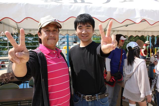 この日は一日中、雲ひとつない五月晴れの青空!!!降り注ぐ陽射しの下、プレーを待つグループは、テントの中から水分補給しながら応援します。