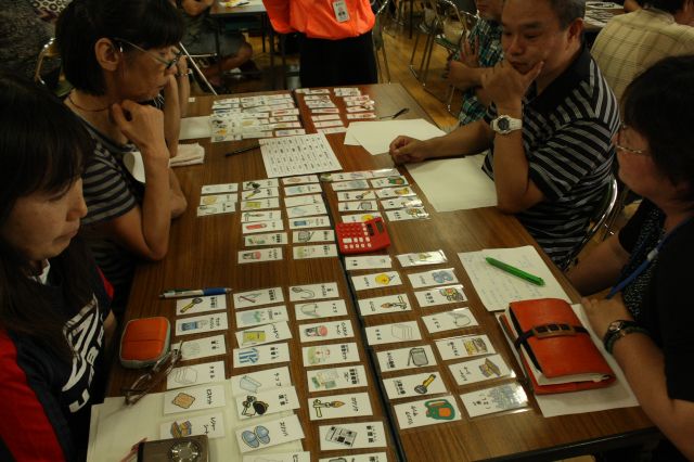 といっても、ほんとに作るわけでなく、1枚のカードを袋に入れる物品に見立て、各自必要と思うものを選ぶという具合です。