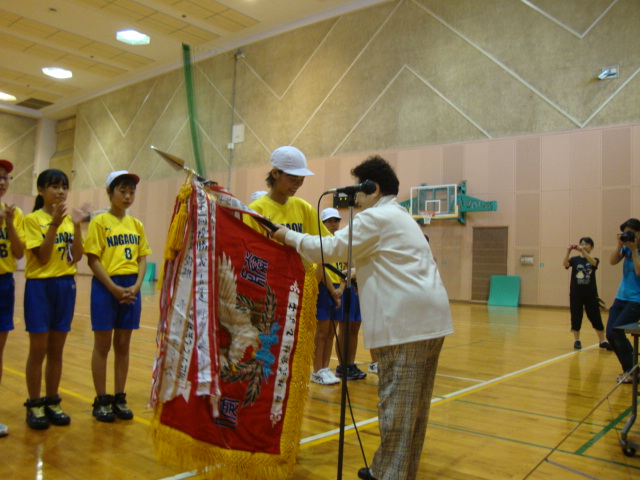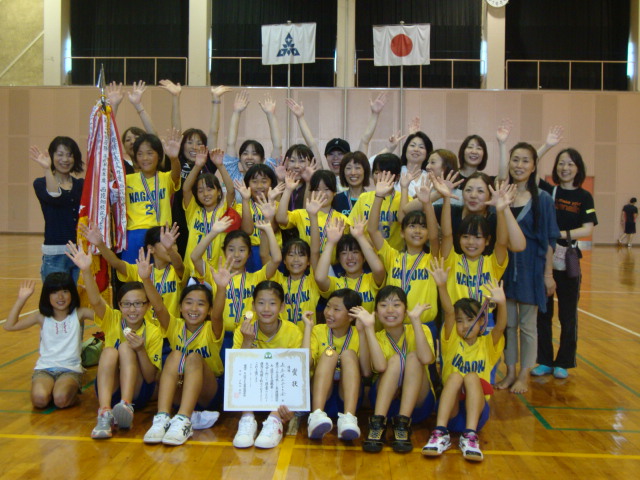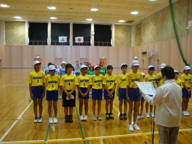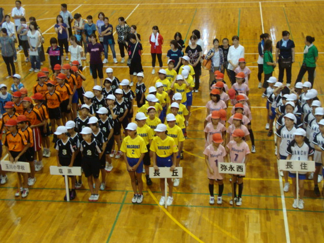 長丘校区からで優勝した5丁目1区・2区のドッジボール合同チームが出場。